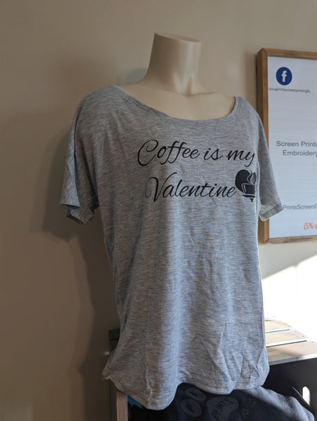 Embrace comfort and style with this women's slouchy tee by Bella+Canvas. These athletic grey shirts are expertly screen printed with "Coffee is my Valentine" in classic black. Designed with an intentionally oversized fit, this relaxed silhouette delivers effortless wearability perfect for casual days. Ideal for coffee enthusiasts and those who appreciate laid-back fashion, this limited-supply piece combines personality with practicality. A must-have addition to any wardrobe seeking comfort without compromise.